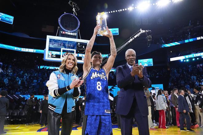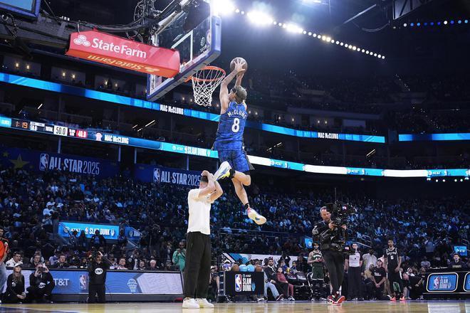 NBA全明星周末插足第二天,在压轴大戏扣篮大赛里,奥兰多魔术队的麦克朗四次扣篮皆格外漂亮,也完成得很棒,四扣一起拿到满分,他毫无争议夺取冠军,竣事扣篮大赛三连冠。